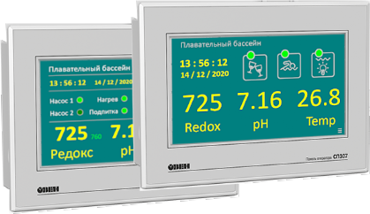 - Две сенсорные панели для установки в щите управления и в помещении бассейна;